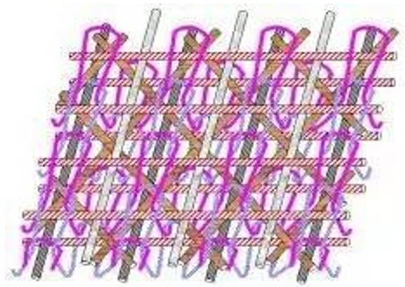 國(guó)外常將(jiāng)用單面(mi要南àn)平針組織結構來捆綁經(jīng)紗和緯紗的緯編雙軸向(xiàng)織物,土西稱為COFAB針織物,使用的原料多為玻璃纖維與芳綸,其模壓成(chéng)快麗型性能(néng)和經(jīng)編雙軸向(xiàng)織嗎火物接近。天津工業大學(xué)研制出了一種(zhǒng)緯編多層內短雙軸向(xiàng)襯紗針織機,它使用羅紋組織結構來捆綁多至5層的襯經(師喝jīng)、襯緯紗,捆綁紗可用芳綸、滌綸等柔性紗線。