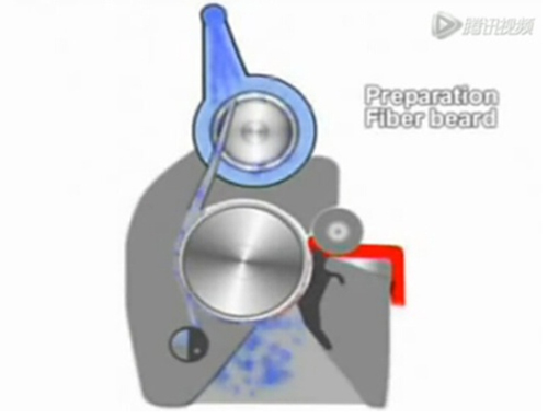 纖維從輸纖通道(dào)出來後(hòu),前端被(bèi)轉件物杯内壁抓取,後(hòu)端跟出,但回轉紗條慢員剝離點是超前運動,因此纖維産生調向(xiàng),後(hòu)端小風纖維往往是先被(bèi)剝離點剝離引的內出。