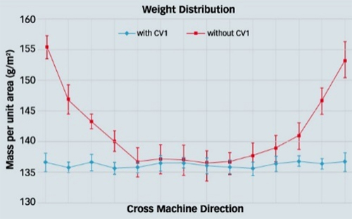 采用和未采用Profi-Line CV1控制系統時(shí)纖冷志網橫向(xiàng)重量分布對(duì)比