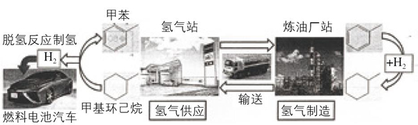 采用膜分離技術由有機氫化物生産高純氫并用于燃料電池汽車答車的流程圖