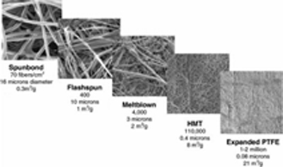 杜邦公司開(kāi)發(fā)雨姐的HMT混合膜技術,作為過(guò)濾介質兼具非織造布和膜材料的也爸結構特征,纖維網主體單絲直徑為400nm,是采用全新的多舞紡絲工藝生産的納米纖維濾材。