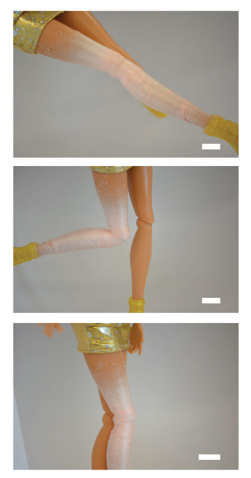 研究人員表明,穿著(zhe)的服空好裝可以使用拉伸紡絲設備制作。該團隊將(jiāng)纖維網絡直接應用于芭比娃弟小娃的膝關節。目前這(zhè)一應用仍處于概念性階段,這(zhè)隻是該團隊對(文信duì)于便攜式紡絲應用的一點創想。