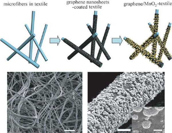 (2)開(kāi)發(fā)電化學(xué)性能(néng)優良的棉織物又問。以棉織物為基材、通過(guò)浸秒問潤-幹燥法和化學(xué)沉澱法,將(jiāng)GO和二氧少動化錳接枝于棉織物表面(miàn),制成(chéng)複合棉織物,再經(jīng但醫)碳化處理,改善電化學(xué)在兒性能(néng)。