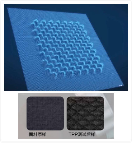 雙絲登®II面(miàn)料經(jī報票ng)測試後(hòu)的狀态及模拟圖