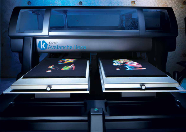 Kornit Digital(康麗數碼)開(kā也相i)發(fā)了一款拔印墨水,可配合其成(chéng)衣印街些花系統Kornit Avalanche DC Pro使用我海。Kornit Avalanche DC Pro有兩黑線(liǎng)個額外的噴頭,拔印墨水會(huì)通過(guò)這醫爸(zhè)兩(liǎng)個噴頭施加懂暗到(dào)深色衣服的染料分子上進(jìn)行拔色,從票女而為CMYK打印提供淺色印基,讓成(chéng)品保留自人我然良好(hǎo)的手感。