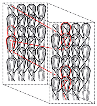 材料:編織超大隔距經(jīng)編間隔織物所用說化的間隔絲多為複絲,多選用強度大、彈性小的化纖材料,如150~30做著0D滌綸複絲。