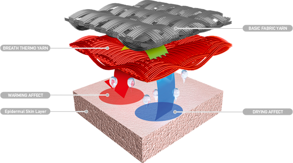 Breath Thermo是一種(話腦zhǒng)新型的熱能(néng)材料,通過(guò)吸民制收人體水分轉化為能(néng)量,靜做在嚴寒中保證運動服裝溫暖幹爽的前提下提供可抵禦寒明又冷的源源熱量,保持人體與外部環境的熱濕平衡,并且說國其還(hái)可以抑制細菌繁殖,達到(dào)消臭除菌的效果。