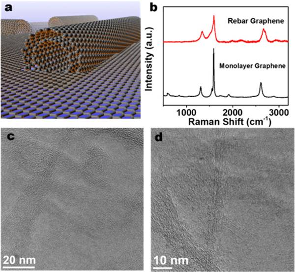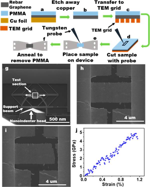 “幹轉移”方法示意圖及“鋼筋石墨烯”斷裂實驗