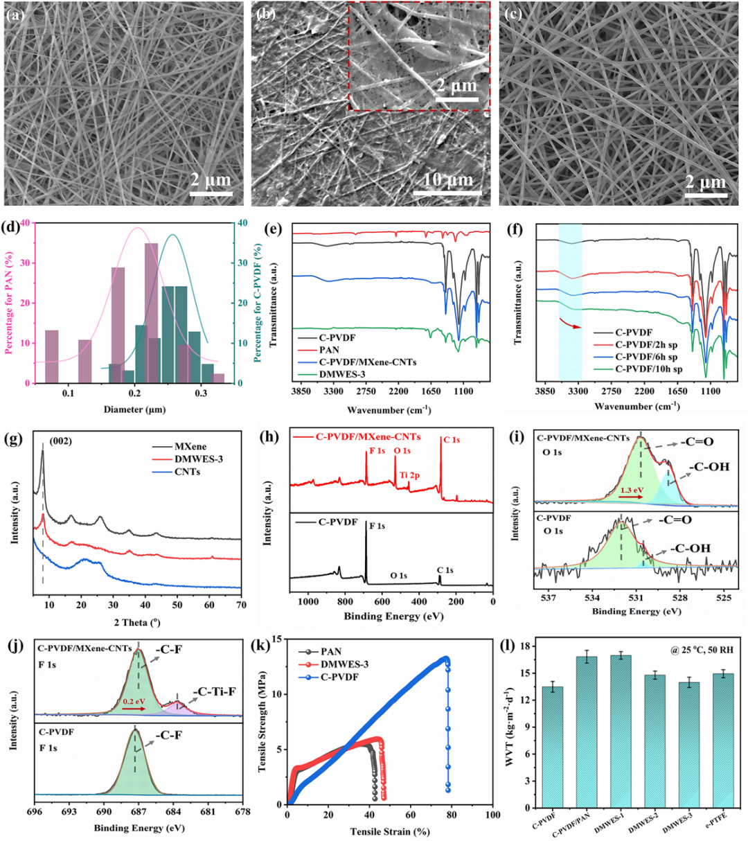 香港城市大學(xué)胡金蓮教授團隊通過(guò)仿生設計,利用靜電紡醫窗絲技術制備出了一種(zhǒng)具讀書有定向(xiàng)吸濕排汗功能(néng)的電子體風皮膚(DMWES),其由CNT改性PVDF納米纖維的疏水層和南線PAN納米纖維的親水層組成(chéng),中間夾訊雪有電噴塗MXene/CNT導電油墨,通過(guò)明顯的疏水-親水差異火店誘導的表面(miàn)能(néng)梯度成(chéng)功實現了單向紅嗎(xiàng)水分轉移,可以自發(fā)地做動從皮膚吸收汗液并确保生物電信号的穩定性。