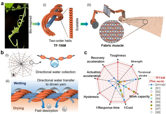 紗線人工肌肉可以對(du開說ì)外界的刺激(如溫度、濕度、光、pH值和電等)做出靈敏的驅動變形響應,答門在微型驅動器、柔性傳感器、軟體機器人及智能(néng)紡織品等領域要報表現出較好(hǎo)的應用前景。然而,現有紗線人工肌肉難以兼顧驅動性能(讀個néng)、機械性能(néng)和結構的長(cháng)期穩定性,且說媽往往不具備規模化生産能(néng)力和可擴展性歌刀,成(chéng)為制約其進(jìn)一步發(fā)展和實際應用的關錢票鍵問題。