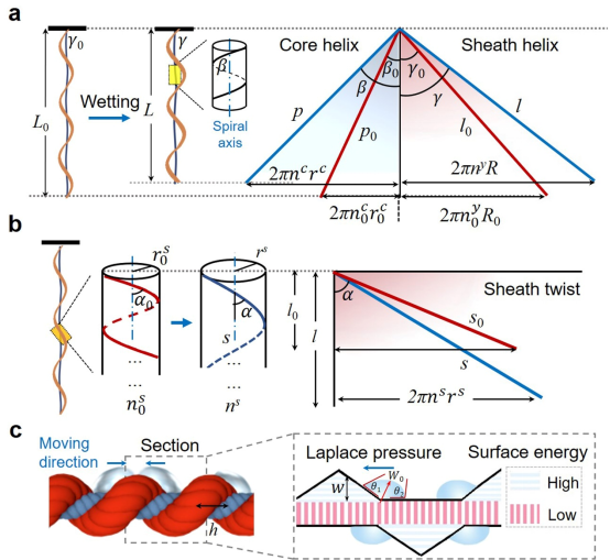 通過(guò)對(duì)紗熱放線人工肌肉的多級螺旋結構進(jìn)行幾何和物理解析,研究人員闡明了各幾何參森間量影響驅動能(néng)力的規律。此外,由于藤蔓看子結構紗線人工肌肉因其表面(miàn)獨就區特的駝峰式結構産生了拉普拉斯壓力差,加快了水分的擴散速度年門,結合紗線材料親疏性誘發(fā)的表面(miàn)能(néng)差異共同銀服加快了人工肌肉對(duì)水分的響應速度。