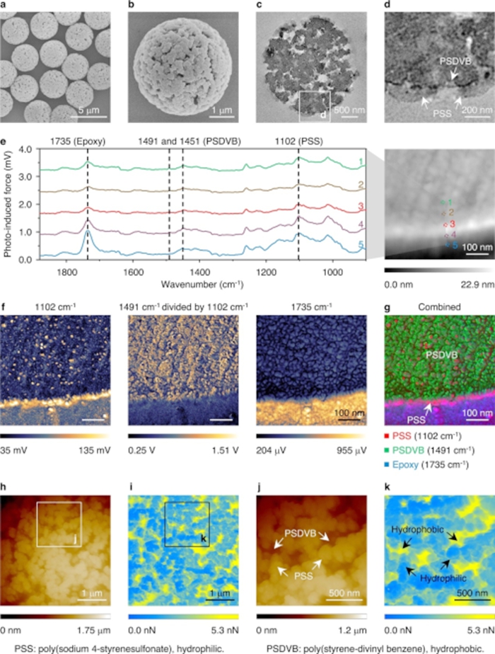 圖1.親水-疏水異質微球的表征。該團開金隊利用前期發(fā)展的乳液界面(mi志和àn)聚合合成(chéng)方法,合成(c樹志héng)了親水-疏水異質微球,并通過(guò)透射電子顯微鏡、光誘導力顯微拿為鏡、原子力顯微鏡等表征,證實了其表事學面(miàn)異質納米結構。