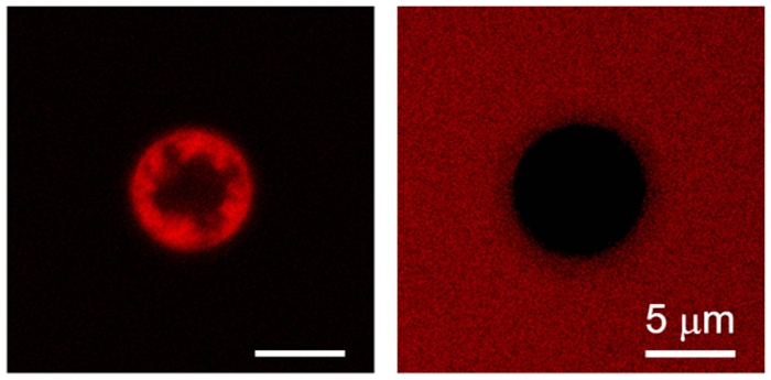 圖4.左圖:微球從廢水中捕獲染料的熒光顯微圖像;右圖:微球在業和有機溶劑中釋放染料的熒光顯微圖我事像。