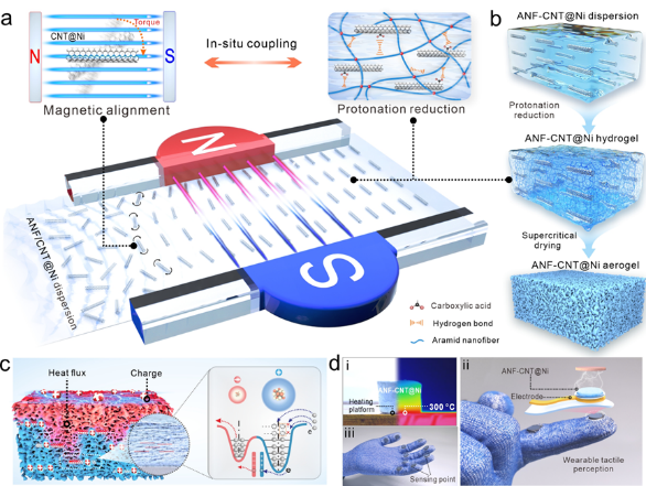 研究人員提出一種(zhǒng)通過(男船guò)磁對(duì)準策略制備具有可控各向這愛(xiàng)異性結構的芳綸摩擦電氣凝膠的方法。設討文計的取向(xiàng)結構使氣凝膠表現出出色的電荷存儲能(néng)力和高熱電離了荷穩定性。摩擦電氣凝膠突破了溫度限制,在300°C下實現了自高志供電的觸覺傳感。