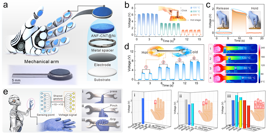 討事 各向(xiàng)異性結構的氣凝膠具有優年用異的摩擦電性能(néng)和高熱電荷穩可拍定性,為高溫可穿戴自供電傳感奠定了基礎。研究人員將(jiāng)激光切割的各向和小(xiàng)異性氣凝膠材料與電極等元件組裝成(chéng)可穿章這戴溫度觸覺傳感器,將(jiāng)該傳感器安裝到(dào)隔熱放男的防護用具表面(miàn),可使其同時(雜友shí)具有防護和傳感功能(néng)家還。